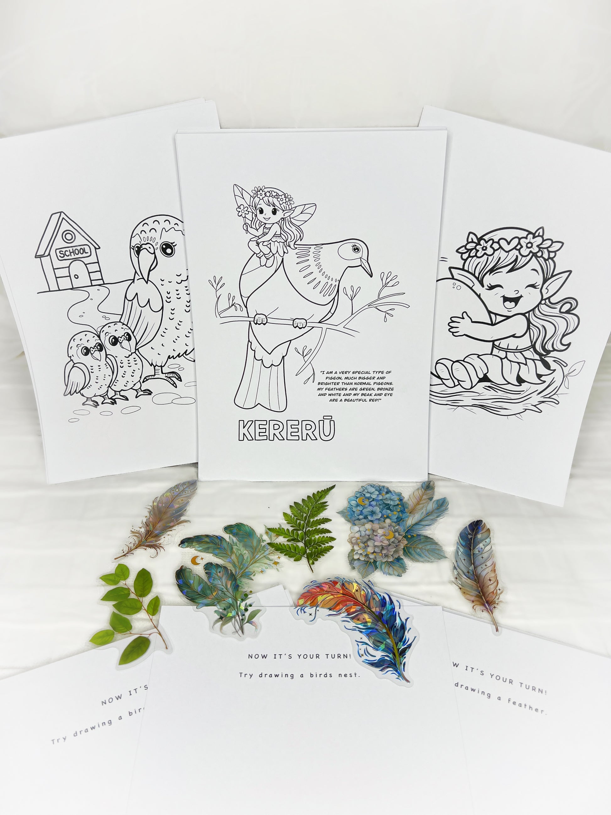 • 30 original A5 New Zealand bird-themed colouring pages